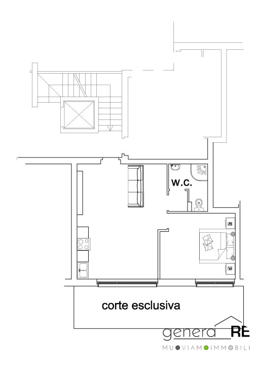 La Genera-Re Immobiliare propone in vendita un bilocale moderno al piano terra, in palazzina di recente costruzione, con corte privata di circa 20 mq e possibilità di ingresso indipendente. Superficie commerciale di circa 65 mq così composto: soggiorno/pranzo, camera da letto, bagno.
