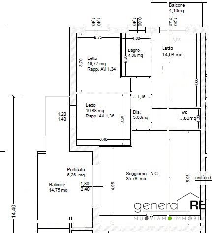 L'appartamento è un quadrilocale posto al primo piano è così composto: salone con cucina a vista, disimpegno, tre camere, due bagni, due ampi balconi.