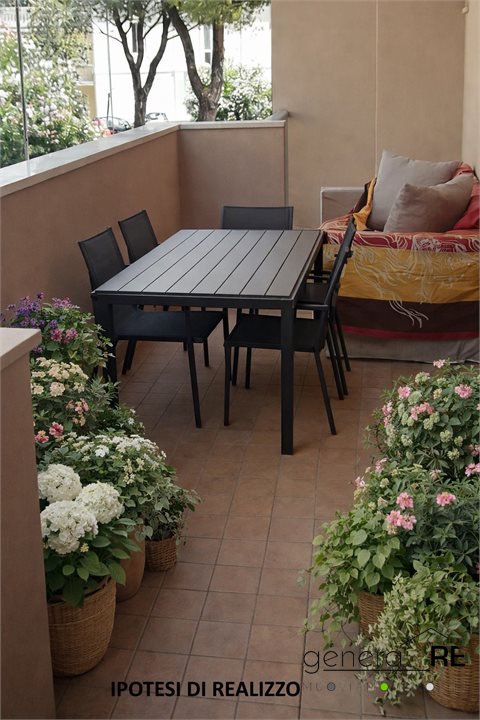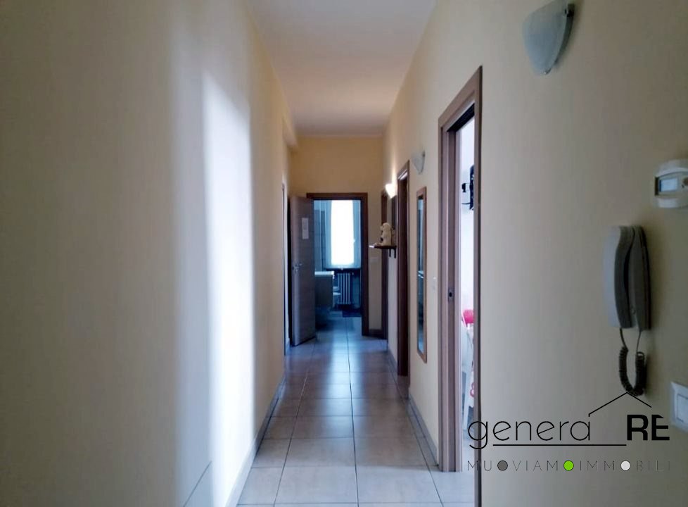 L'immobile posto al piano primo con ascensore, della superficie di mq 140, è composto di ingresso, ripostiglio, sala, disimpegno con cucina, due camere da letto e due bagni. Completano la proprietà un ampio balcone che corre su tutta la casa.